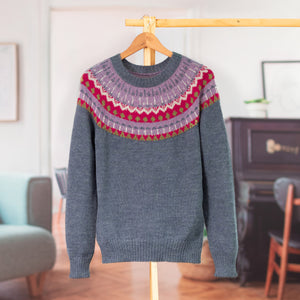 100% Alpaca Knit & Patterned Pullover Sweater in Steel Blue - Winter Skyline