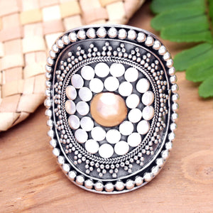 Crown Motif Moonstone Cocktail Ring from Bali - Lotus Crown