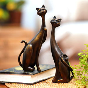 Set of 2 Golden Cement and Lava Sand Cat Sculptures - Fanciful Felines