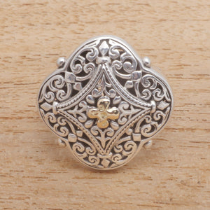 Gold Accented Sterling Silver Cocktail Ring from Bali - Queen's Pride