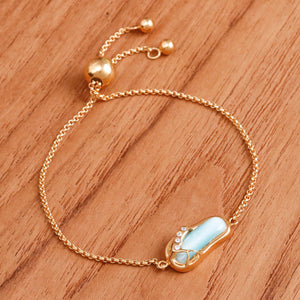 Gold-Plated Larimar Blue Topaz Thong Sandal Pendant Bracelet - Chic Thong Sandal