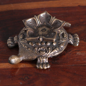 Floral Turtle-Shaped Antiqued Brass Sculpture from India - Floral Guidance
