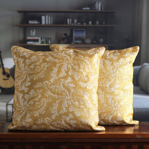 Leafy Honey and Ivory Cotton Blend Cushion Covers (Pair) - Honey Nature
