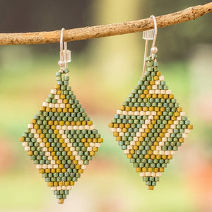 Chevron-Patterned Green Glass Beaded Dangle Earrings - Green Frequencies
