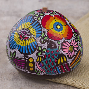 Hand Carved and Painted Birds Flowers Gourd Decorative Box - Garden Song