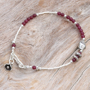 Thai Braided Red Cord Bracelet with 950 Silver Beads - Affinity in Red