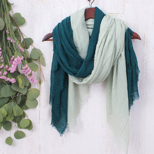 Pair of Hand-Woven Lightweight Green and Teal Cotton Scarves - Ocean Vibes