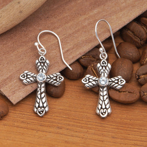 Cross-Shaped Sterling Silver Blue Topaz Dangle Earrings - Ocean Cross