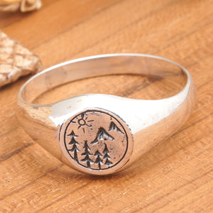 Men's Sterling Silver Domed Ring with Embossed Details - Celebration Night