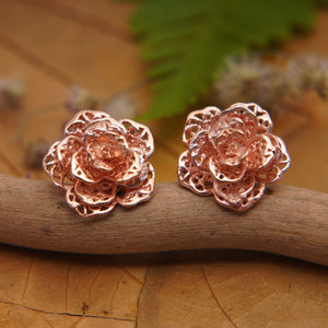 Polished Floral 18k Rose Gold-Plated Button Earrings - Primaveral Rose