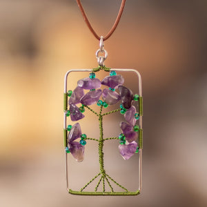 Tree-Themed Purple and Green Amethyst Pendant Necklace - Sylvan Purple