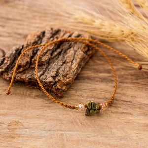 Adjustable Macrame Unakite and Crystal Pendant Bracelet - Balance Flower