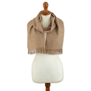Brown Beige and Grey Scarf Hand-Woven From 100% Baby Alpaca - Andean Allure