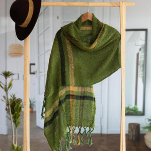 Handwoven Alpaca Blend Shawl in Moss Green from Peru - Moss Elegance