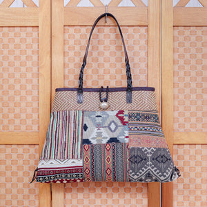 Cotton Blend Patchwork Shoulder Bag - Shopping Day in Red