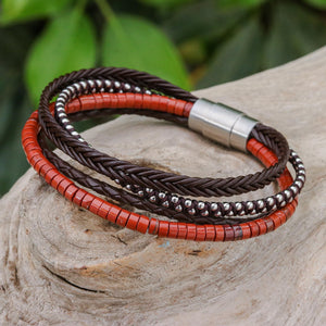 Thai Leather and Jasper Beaded Bracelet - Southern Holiday