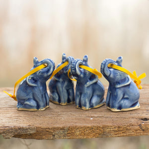 Celadon ceramic ornaments (Set of 4) - Blue Holiday Elephants