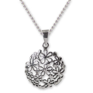 Floral Sterling Silver Pendant Necklace - Hydrangea