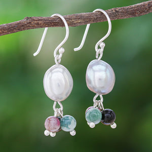 Cultured Freshwater Pearl Quartz Chalcedony Dangle Earrings - Bellini Bubbles