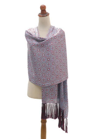 Aster Print Light Blue and Crimson Batik Shawl - Aster Blue