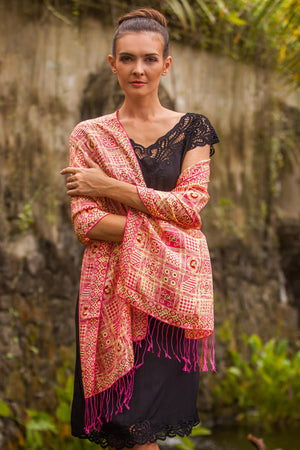 Pink Hand Dyed Batik Silk Shawl with Ceplok Motif from Java - Ceplok Temple Fuchsia