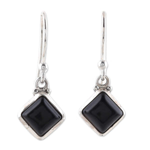 Square Onyx Dangle Earrings Crafted in India - Happy Kites in Black