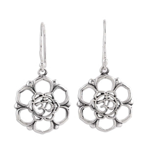 Sterling Silver Floral Om Symbol Dangle Earrings - Floral Om