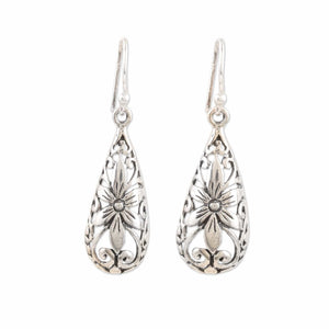 Sterling Silver Dangle Earrings with Floral Motifs - Blooming Tears