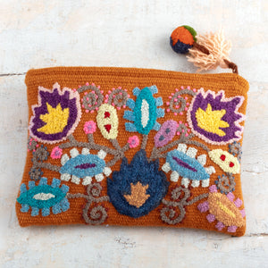 Handwoven Floral Wool Clutch in Mahogany from Peru - Peruvian Bouquet