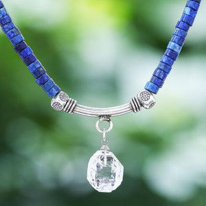 Handmade Clear Quartz and Lapis Lazuli Pendant Necklace - Wild Moon