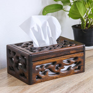 Hand-Carved Teak Wood Tissue Box Cover in Brown - Fancy Teak