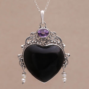 Amethyst Cultured Pearl Silver Black Bone Heart Necklace - Love Like Midnight
