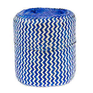 Blue Hand-Woven Palm Fiber Basket with Lid from Mexico - Tiger in Blue