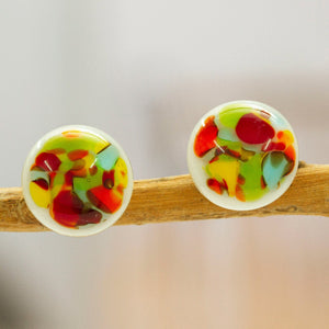 Black & White Fused Glass Mosaic Button Earrings from Mexico - Black & White Textures