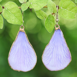 Lavender-Toned Gold-Accented Petal-Shaped Dangle Earrings - Dreamy Petal