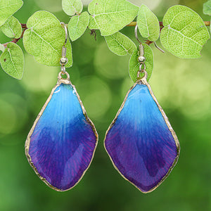 Blue and Purple Orchid 22k Gold-Accented Dangle Earrings - Oneiric Petal
