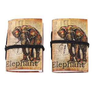Paper Mini-Journals with Screen-Printed Covers (Pair) - Elephant Adventure