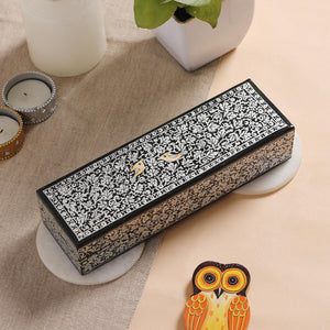 Handmade Wood Floral Decorative Box by Indian Artisan - Midnight Charm