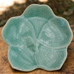 Floral Celadon Ceramic Serving Plate - Light Blue Vanda