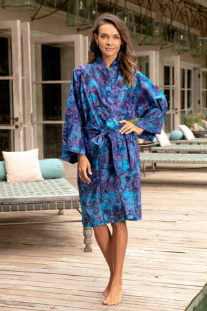 100% Cotton Artisan Batik Robe - Moonlit Blossoms