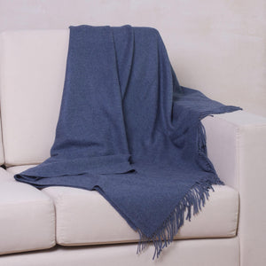 100% Baby Alpaca Throw Blanket in Solid Azure from Peru - Blissful Dream in Azure