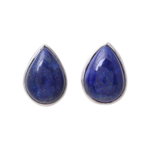 Teardrop Lapis Lazuli Button Earrings from India - Mystic Tears