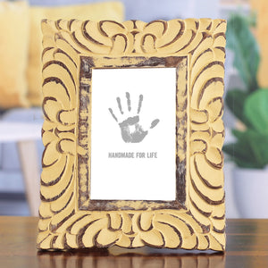 Distressed Yellow Hand Carved Mango Wood Photo Frame (4x6) - Sunlit Day