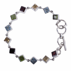 Handcrafted Multigemstone and Sterling Silver Link Bracelet - Delicate Gaze