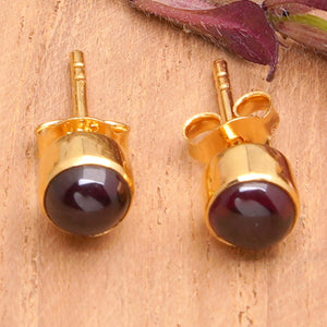 18k Gold-Plated Stud Earrings with Amethyst Stone from Bali - Petite Purple