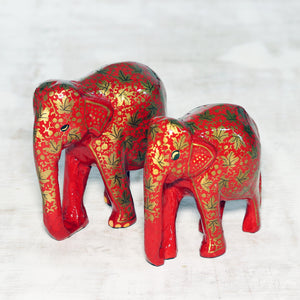 Leaf Motif Papier Mache Elephant Sculptures (Pair) - Chinar Bond