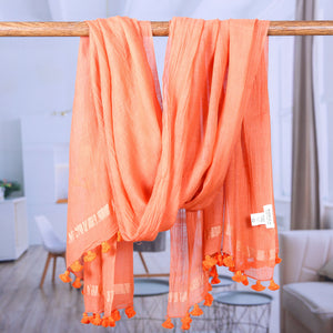 Ginger-Toned Cotton and Silk Blend Shawl with Tassels - Spicy Ginger