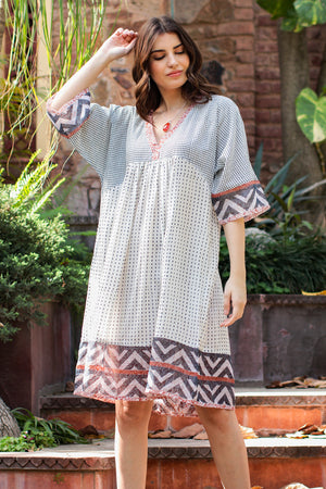 Lightweight Embroidered Cotton Shift in White - Paisley Garden in White