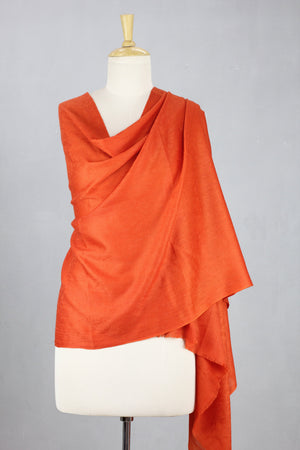 Artisan Crafted Orange Paisley Jacquard Wool Wrap - Sunset Glamour
