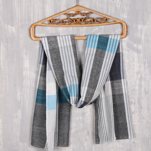 Patterned Blue and Grey Cotton Shawl from India - Blissful Combination